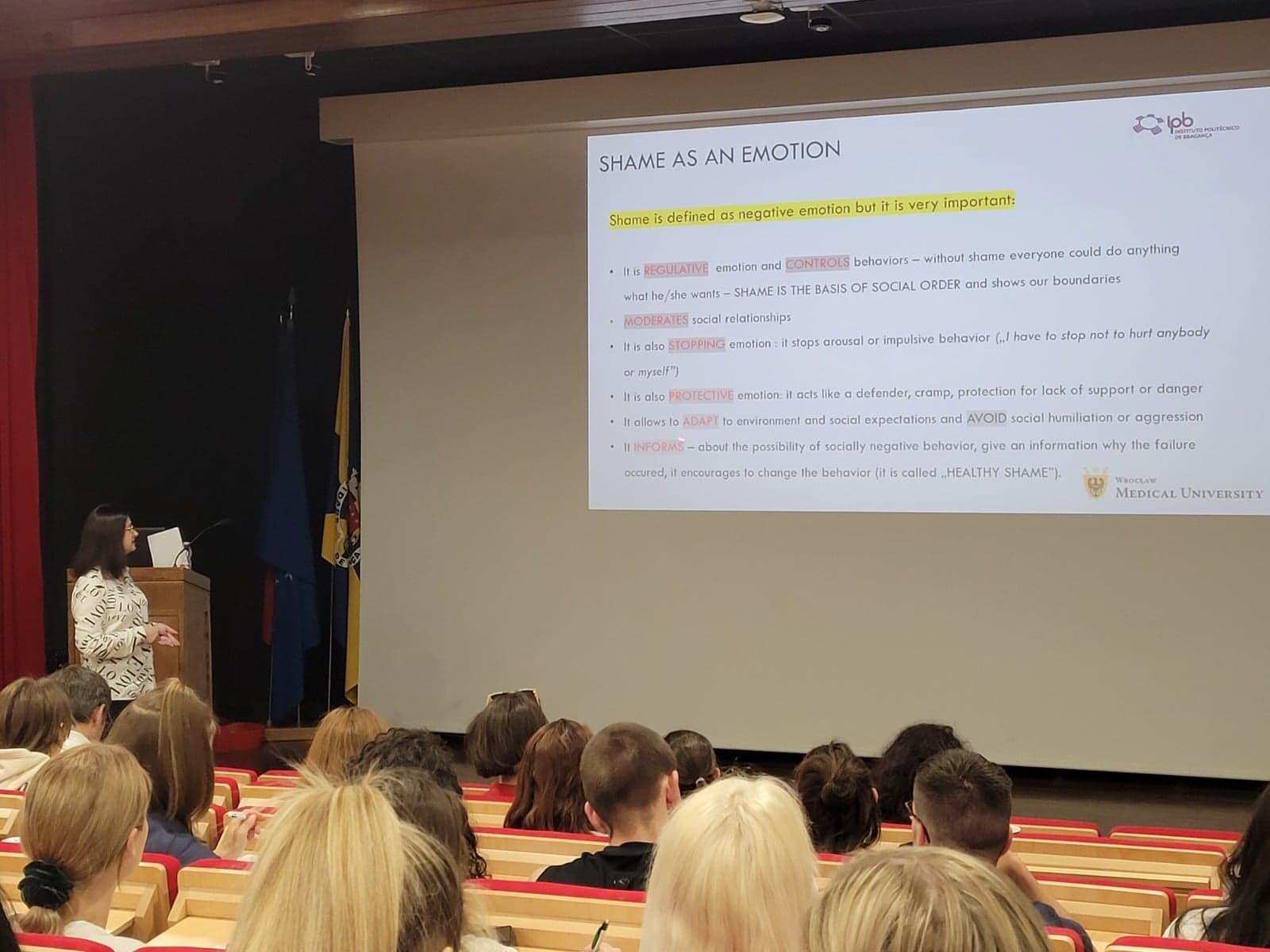 Podczas stacjonarnego kursu EE, dr Agnieszka Lintowska zapoznała studentów z technikami oddechowymi wspomagającymi radzenie sobie z trudnymi emocjami, a dr Monika Wójta-Kempa przeprowadziła seminarium na temat związku pomiędzy odczuwaniem wstydu a obszarem zdrowia fizycznego, psychicznego i społecznego.
